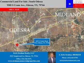 Kirk Strahan Realty is proud to offer a +/- 37.8 Acre commercial land property for sale in south Odessa! • Prime Industrial Property For Sale – ONLY +/-$53K per Acre! • Strategic Location: Easy access to West County Road, Interstate 20, and Loop 338 • Industrial-Ready: Caliche-stabilized with a 6' perimeter fence • Development Flexibility: Easily divisible for customized development Call Kirk Strahan at (432)-661-8704 for more information on this property.