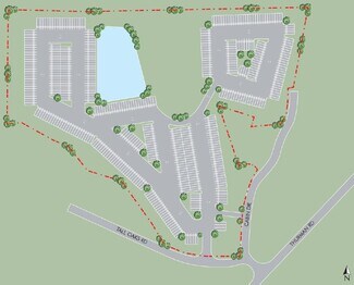 • Will deliver with heavy duty asphalt, fenced and striped, with detention and solar-powered LED lighting.
