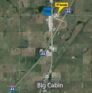 CAN BE SUBDIVIDED. Strategic location: situated directly off the Big Cabin exit, this property benefits from its convenient placement along major transportation routes, making it an ideal choice for a truck stop or any other land use requiring heavy traffic. With easy access to highways and a significant volume of truck traffic passing through the area, the location is perfect for catering to the needs of truckers.