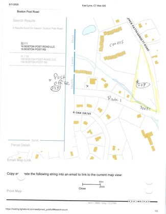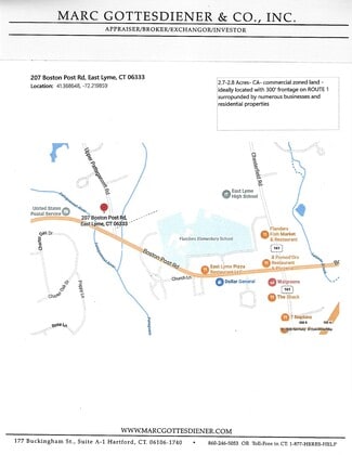 about 2.87 Acres zoned commercial with some wetlands in the front & low yet ample space for development towards the middle and rear which still offers excellent visibility from Route 1. Neighbors are all commercial and businesses and about 1/3 mile west of Flanders Four Corners. Post Office to the west. Upper Pattagansett Road has over 550' frontage for easy access and building with sewers now in. Many possibilities on Route 1 but entrance would be from side street corner. APPROVED BY Eversource for 6 EV chargers.