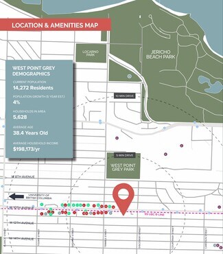 Positioned in Vancouver’s prestigious West Point Grey neighborhood, this offering includes two side-by-side boutique multifamily buildings with strong income stability and redevelopment potential. Together, the properties feature 27 residential suites and two commercial retail units totaling approximately 26,199 sq. ft. of net rental area. The combined frontage of 132 feet along West 10th Avenue enhances visibility and access, while the C-2 commercial zoning supports mixed-use development opportunities with a potential density of up to 56,364 sq. ft. (3.50 FSR). The location benefits from proximity to the University of British Columbia, top-rated schools, multiple parks, and a variety of retail and dining options. Recent capital improvements include full suite renovations, upgraded windows, security systems, and roof replacements, ensuring operational efficiency and tenant appeal. With attractive demographics, high household incomes, and sustained rental demand, this asset offers investors a rare chance to secure a well-maintained property in one of Vancouver’s most sought-after markets, with long-term upside through redevelopment.