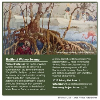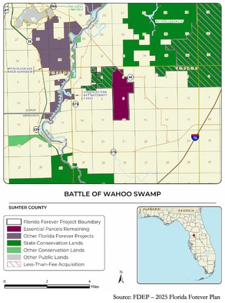 This extraordinary 763± acre property in Sumter County, Florida, is truly one of a kind. Rich in fertile soils and minerals, it offers strong agricultural value and an unparalleled cultural legacy as the site of the 1836 Battle of Wahoo Swamp, a defining conflict of the Second Seminole War. Recognized as one of Florida’s most important historic landscapes, it preserves hardwood hammocks, cypress swamps, and freshwater marshes that support rare orchids and ferns found in few other places.