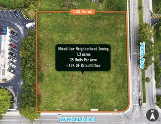 Marcus & Millichap is pleased to exclusively offer a ±1.3 Acre development site with approximately 225 feet of frontage at the signalized intersection of W McNab Road and NW 70th Avenue in Tamarac, Florida with daily exposure of ±45,000 vehicles. Located on the northwest corner, the property is zoned Mixed Use–Neighborhood (MU-N), permitting up to 35 residential units per acre or up to 10,000 square feet of retail space including a QSR or Drive through. The site has access to Florida’s Turnpike, Interstate 95, and the Sawgrass Expressway. Within 2 miles are Midway Plaza (Publix, Ross, Dollar Tree, Five Below), Brookwood Center (ALDI, CVS, Dunkin’), and McNab Commons (Starbucks, McDonald’s). Nearby employers include City Furniture Headquarters, Amazon Tamarac Delivery Station, University Hospital & Medical Center, and PuroClean Headquarters.