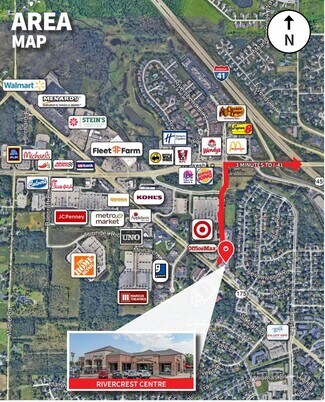 Upscale retail center with strong co-tenants Chipotle, Panera, Noodles, AAA, Herslof Optical, Forefront Dermatology and others. Retail center located within a development anchored by Target and OfficeMax near the intersection of County Line Rd and Appleton Avenue and close to Hwy 41 interchange.